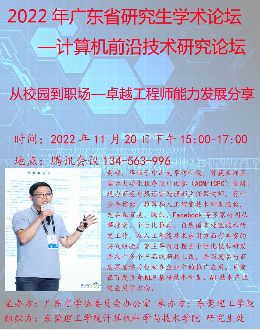 学术预告| 2022年广东省研究生学术论坛-计算机前沿技术研究论坛
