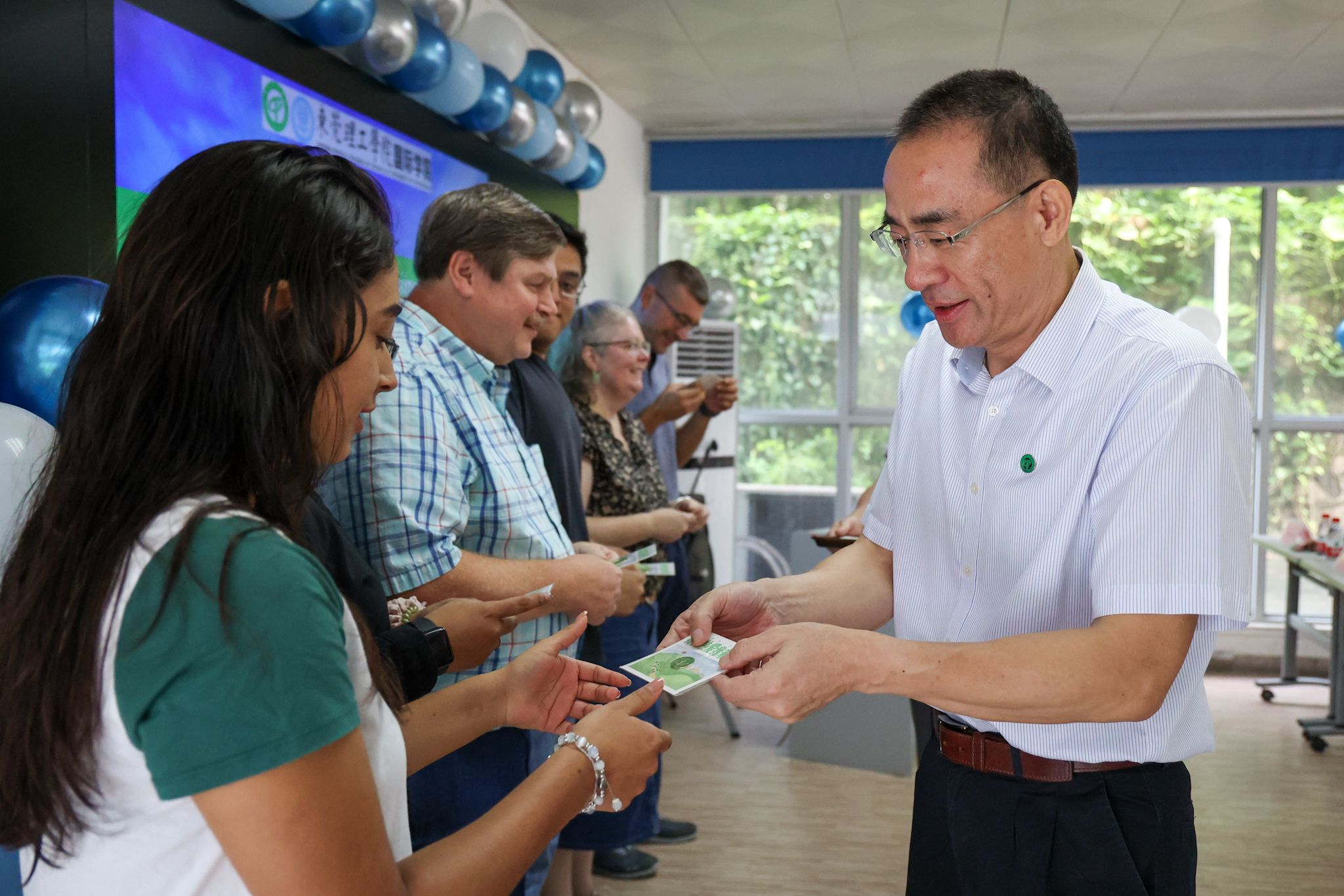 校徽,是一名学生身份的象征。开班仪式上,副校长杨敏林亲手为每一位留学生颁发校徽。从戴上校徽的那一刻起,标志着新生成为一名真正的莞工人。